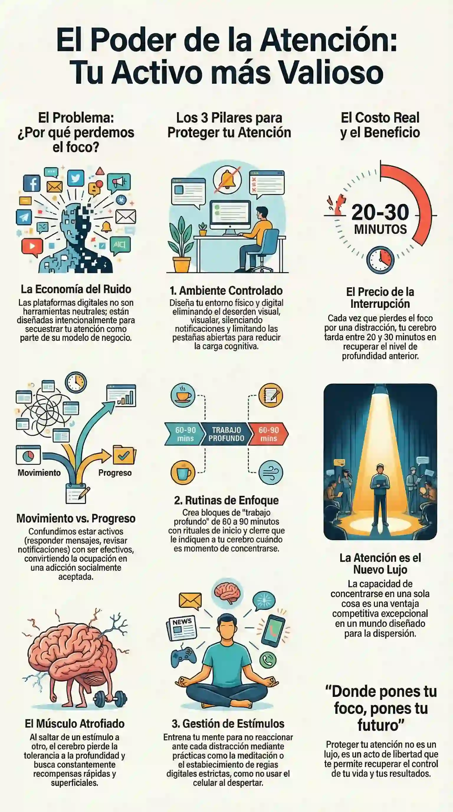 Recuperar el control de tu enfoque es recuperar el control de tu vida. La capacidad de concentrarse en una sola cosa se ha convertido en el nuevo lujo de la era digital y en la ventaja competitiva más poderosa que puedes poseer.